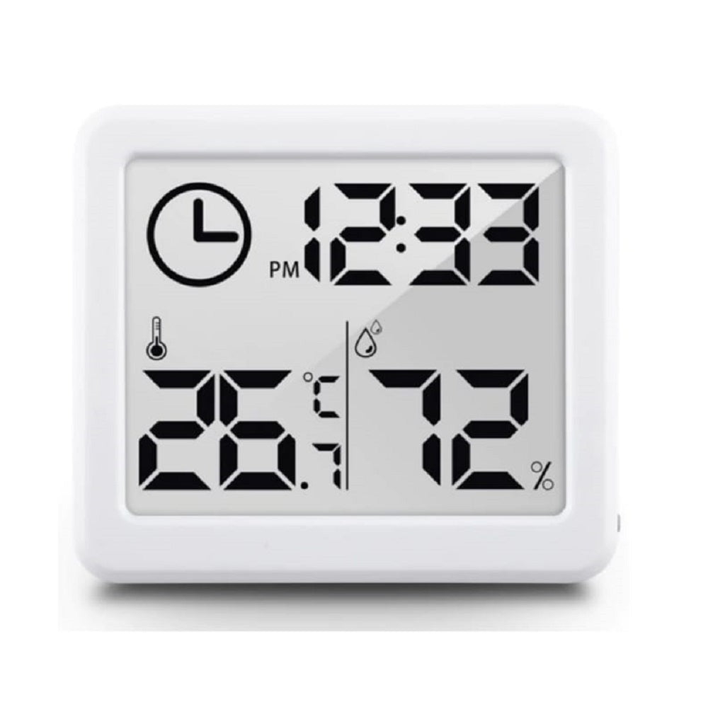 Incluye visualización de hora, fecha, año, alarma, humedad interior y temperatura